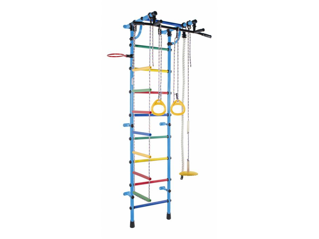 RAINBOW can be called universal without exaggeration. It is suitable for every child thanks to the variety of sports equipment. To the usual composition of sports equipment, a bungee and a basketball hoop are added.